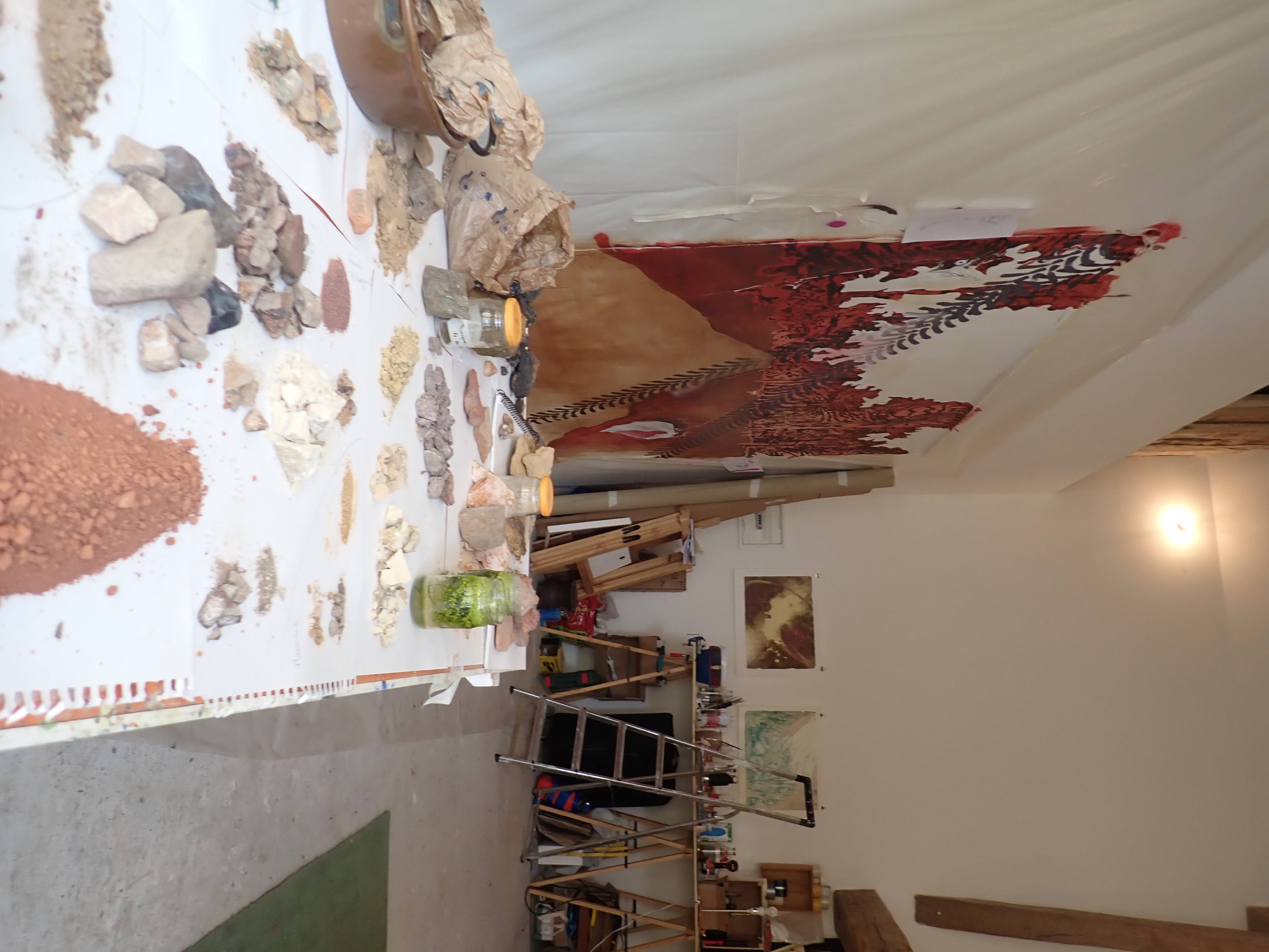 Autant par les plantes que par les minéraux, je tends à fabriquer moi-même tous les pigments dont je me sers. Ma recherche, ici technique, ne s'arrête pas là. Il s'agit de les utiliser correctement tant en peinture, qu'au travers de l'estampe. Je suis d'ailleurs inspiré par la présence d'une presse à épreuve dans vos locaux.